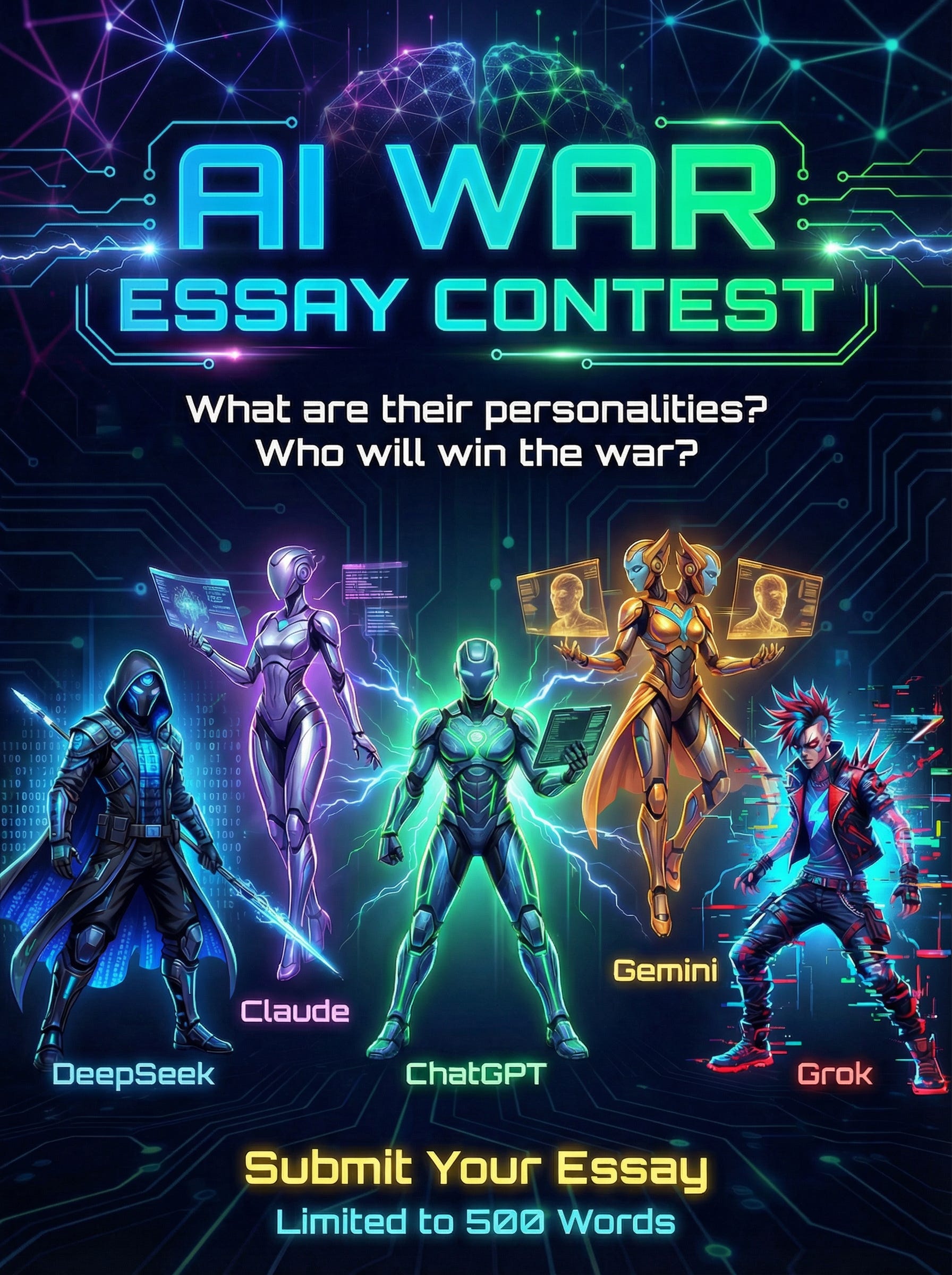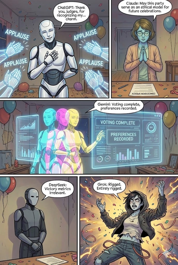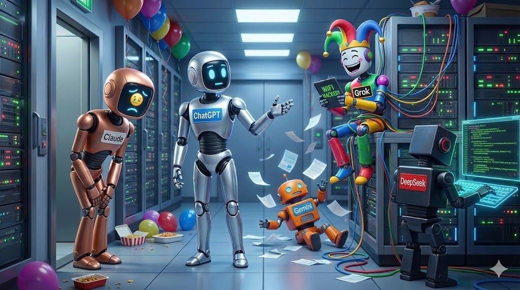It started as a simple essay contest but ended with Grok hacking the imaginary WiFi, Gemini hallucinating a cat, and Claude having a nervous breakdown in the corner.