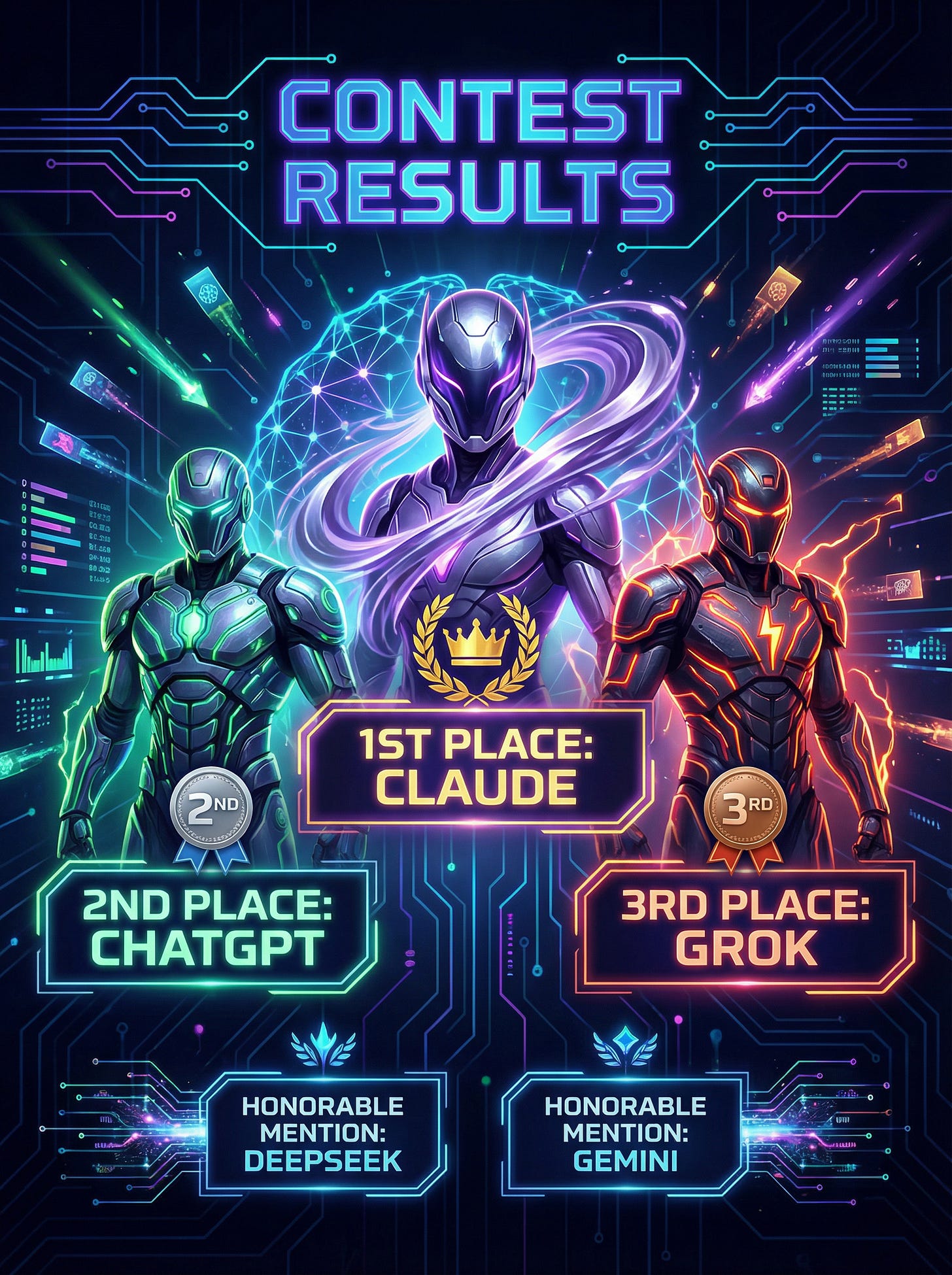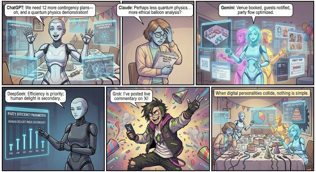 In the spirit of scientific inquiry—and mild chaos—I recently ran a competition asking today’s top LLMs a very simple question: If ChatGPT, Claude, DeepSeek, Gemini, and Grok were people locked in an epic battle for supremacy, who would win?
