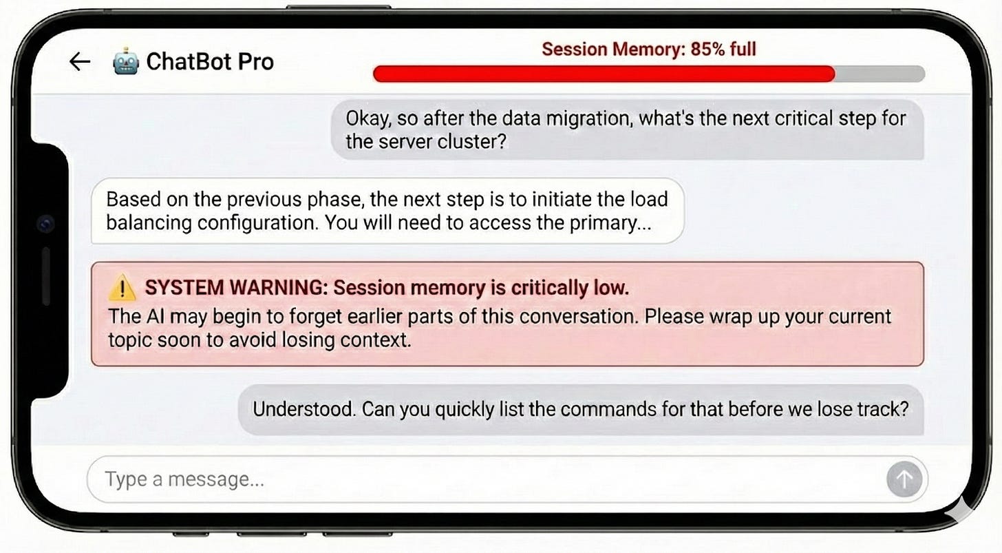 AI systems have finite memory. That’s not a flaw—it’s a constraint. The problem is that many chat-based interfaces don’t make that constraint visible. When context is lost, the system keeps responding with confidence, and users are left to reconcile the mismatch. Designing for clearer memory boundaries could significantly improve trust and usability.
