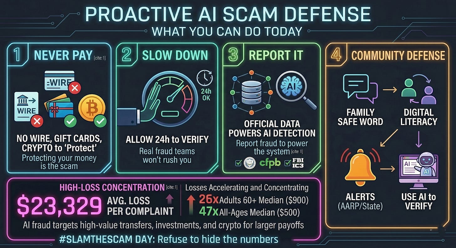 Invest in cross-generational digital literacy. Community centers, libraries, and houses of worship can pair younger people with older adults to teach practical skills: how to spot phishing, verify a caller, and use AI tools defensively. Social isolation is a scammer’s best friend; connection is the antidote.