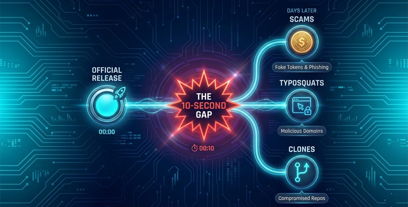 Within days, typosquat domains and cloned repositories appeared with professional sites and false attribution. Malwarebytes found the cloned code was clean—no malware, no exfiltration. That’s what made it dangerous.